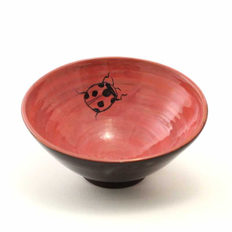 Die handgedrehten Stielschalen sind durchgehend in einer mediterranen Farbpalette gefärbt. Sie zeigen die Zeichnung eines Insekts, die von einer entomologischen Tafel entnommen und mit einem Pinsel fein gemalt wurde. Die vollständig in der Provence handgefertigten Schalen verleihen Ihren Gerichten einen Hauch von Natur. Sie richten sich sowohl an Sammler entomologischer Souvenirs als auch an Liebhaber handwerklicher Töpferwaren, die Natur und Humor schätzen. Servieren Sie Ihren Gästen Schüsseln mit Marienkäfermuster und wünschen Sie ihnen alles Glück der Welt.