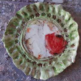 Assiette plate de la collection Tsara be Réalisez une belle table qui emmènera vos convives en voyage ! Cette collection est inspirée de la luxuriance de la végétation tropicale de la côte Est de la Grande ile de Madagascar. Artisanat de Provence : Pièces uniques réalisées à la main, à la demande. Diamètre : 25 cm.